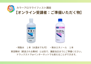 【受講料】 22,000円(税込) ※事前お支払い(クレジット決済・銀行振込可) ※勉強会の教材は郵送にてお届けします。 恐れ入りますが、送料は受講生様のご負担となります。 受講料に送料を加えた金額を、あらかじめご了承ください。 <感謝企画> 【受講対象】 【日程】所要時間:3時間 ♦︎2/22 (日) 14:00-17:00 ♦︎2/25 (水) 14:00-17:00 ♦︎2/26 (木) 10:00-13:00 ※その他日程ご希望の方は、ご相談ください。 【オンライン:事前準備】 ・精製水 1本(水道水でも可) 実習教材(郵送される教材)とは別で、