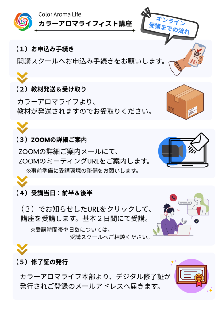 【受講料】 33,000円(税込) ※事前お支払い(クレジット決済・銀行振込可) ※12色のアロマオイル付 ※デジタル修了書付 ※講座教材一式は郵送にてお届けします。 恐れ入りますが、送料は受講生様のご負担となります。 受講料に送料を加えた金額を、あらかじめご了承ください。 【受講対象】 【日程】所要時間:6時間 ♦︎3/10 (火) 10:00-13:00 【後半】 ♦︎3/14 (土) 10:00-13:00 【前半】 ♦︎3/15 (日) 10:00-13:00【後半】 ※その他日程ご希望の方は、ご相談ください。