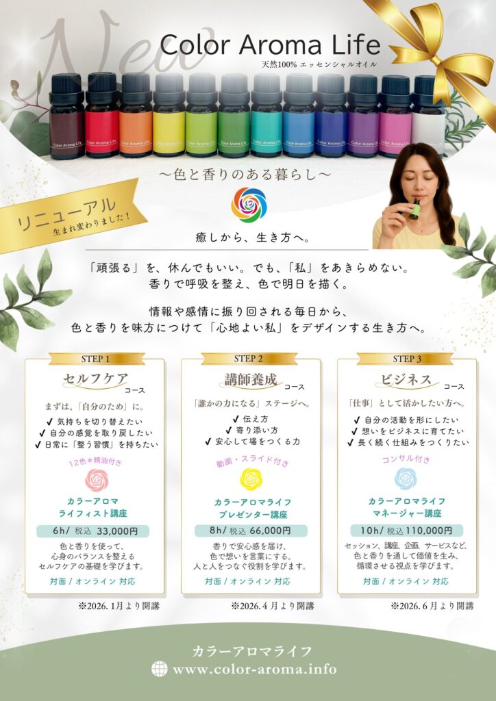 生活密着型で、実用・実践的な色と香りの活用講座です。