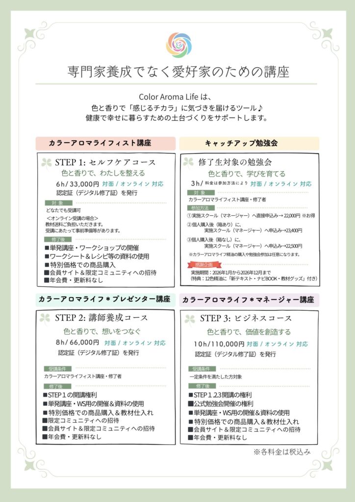 | 『カラ―アロマライフィスト講座』 (6時間) |